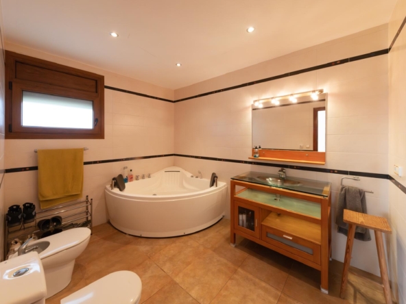 Descubre esta impresionante propiedad única en Castelló d’Empúries, ideal para quienes buscan confort y estilo en una sola planta. Con una generosa parcela de 737 m² y más de 200 m² de espacio habitable solo en planta baja, esta casa ofrece un ambiente acogedor y funcional. Disfruta de cuatro amplios dormitorios, algunos equipados con armarios empotrados, y cuatro baños que garantizan privacidad y comodidad para toda la familia.