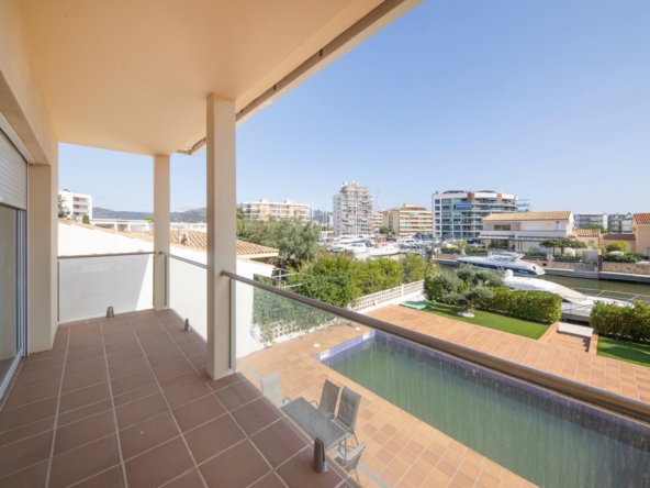 Extras: Garaje, amarre, piscina, persianas eléctricas, aire acondicionado, calefacción central. La casa se vende amueblada. El precio incluye la lancha, una moto acuática y un Mercedes con matrícula española.