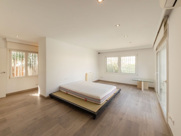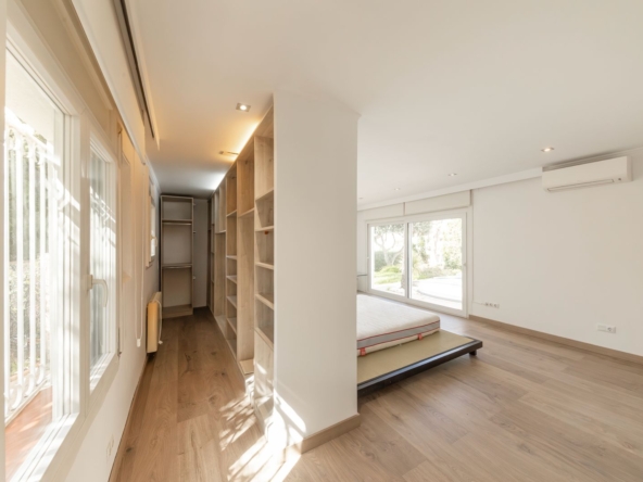 El exterior es un auténtico oasis: un jardín consolidado con abundante vegetación que envuelve la propiedad y garantiza una atmósfera íntima y relajada, junto a una exclusiva zona de piscina donde disfrutar del clima mediterráneo durante todo el año.