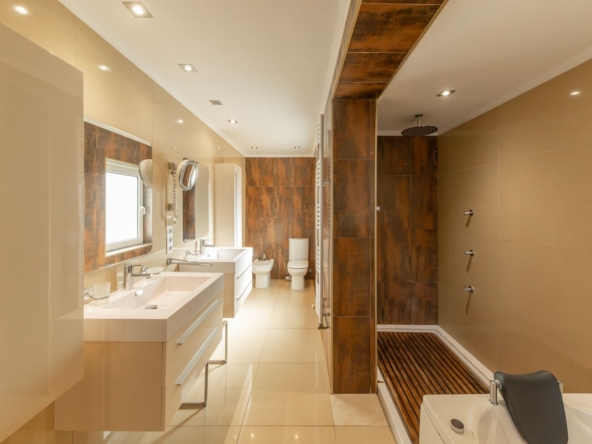 La zona de descanso, pensada para el máximo confort, dispone de 5-6 elegantes dormitorios y 5 baños completos, ofreciendo un equilibrio perfecto entre privacidad y bienestar.
