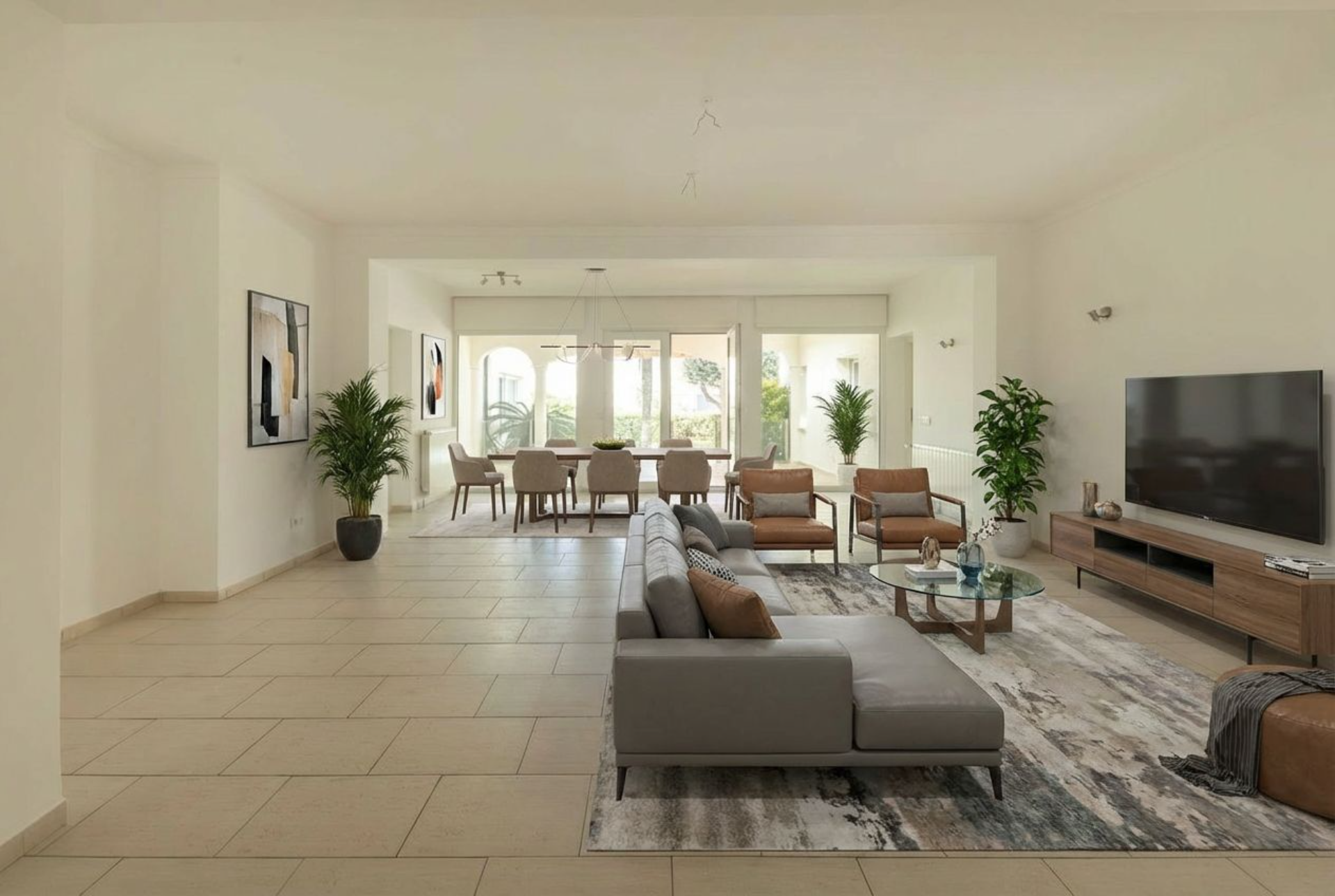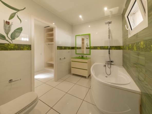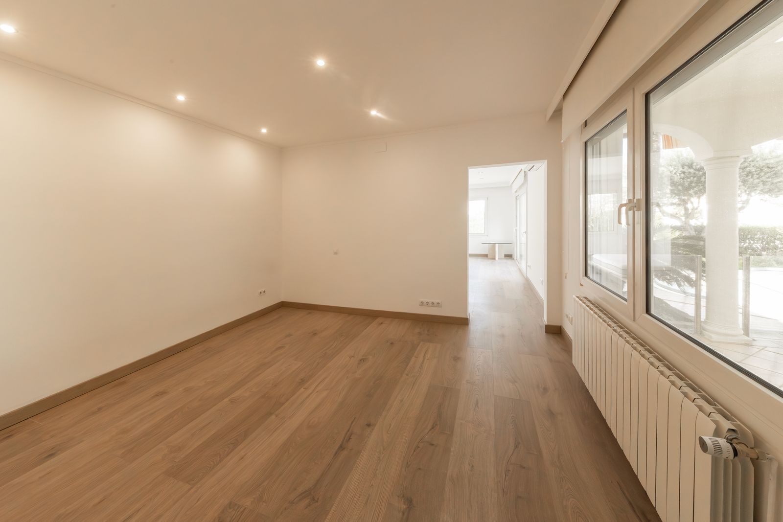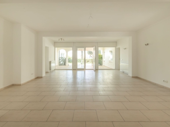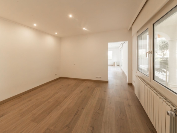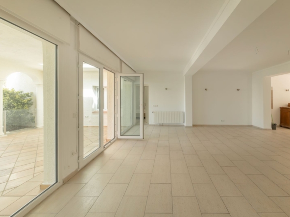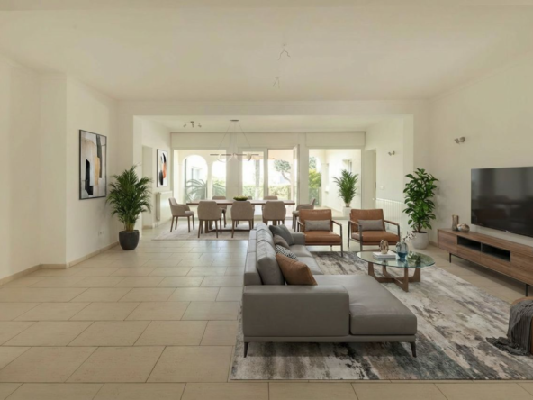 Desde el primer momento, la vivienda transmite confort y sofisticación. Un amplio y luminoso salón-comedor de 38 m² se abre a una cuidada terraza acristalada, creando un espacio continuo que conecta interior y exterior con vistas al exuberante jardín y la piscina.