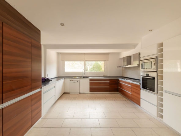 La cocina independiente, completamente equipada y de generosas dimensiones (21 m²), combina funcionalidad y diseño, ideal tanto para el día a día como para recibir invitados.