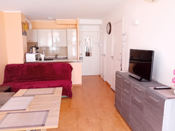 Ubicado en una primera planta sin ascensor, este acogedor apartamento destaca por su excelente ubicación y su agradable entorno con piscinas y jardines comunitarios.