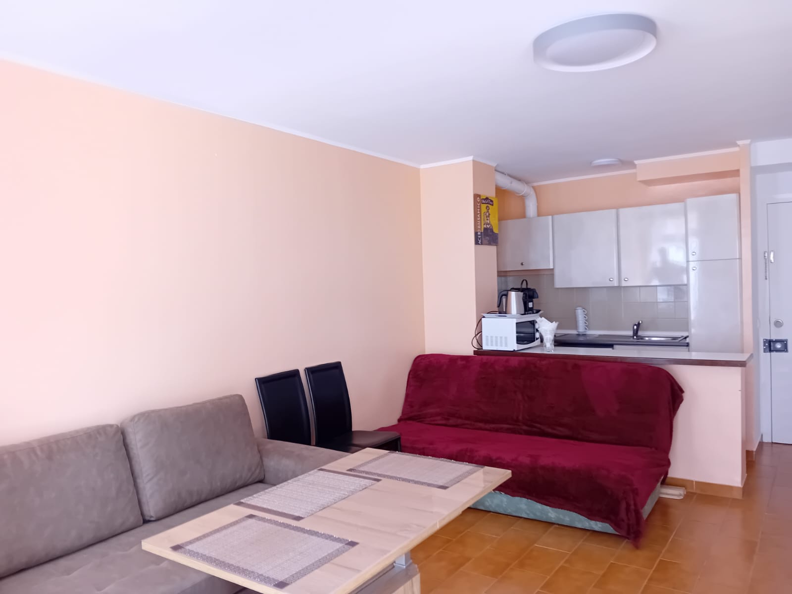 La vivienda se distribuye en un amplio salón-comedor con cocina americana, creando un espacio abierto, cómodo y funcional. Desde el salón se accede a un balcón orientado al sur, ideal para disfrutar del sol durante todo el día.