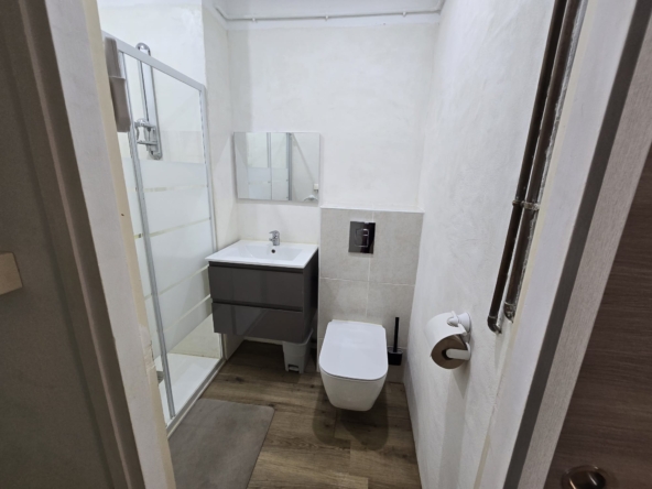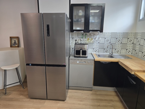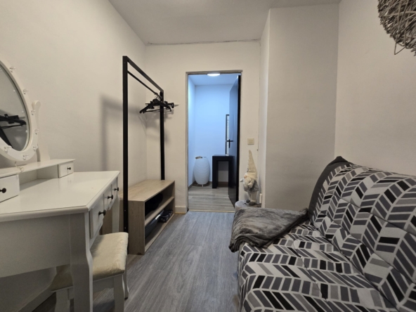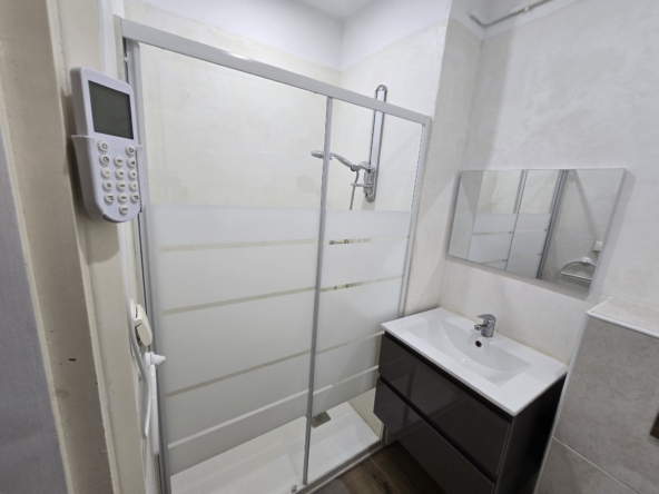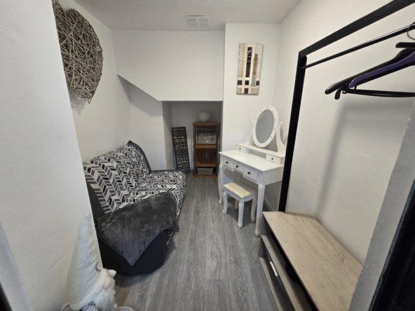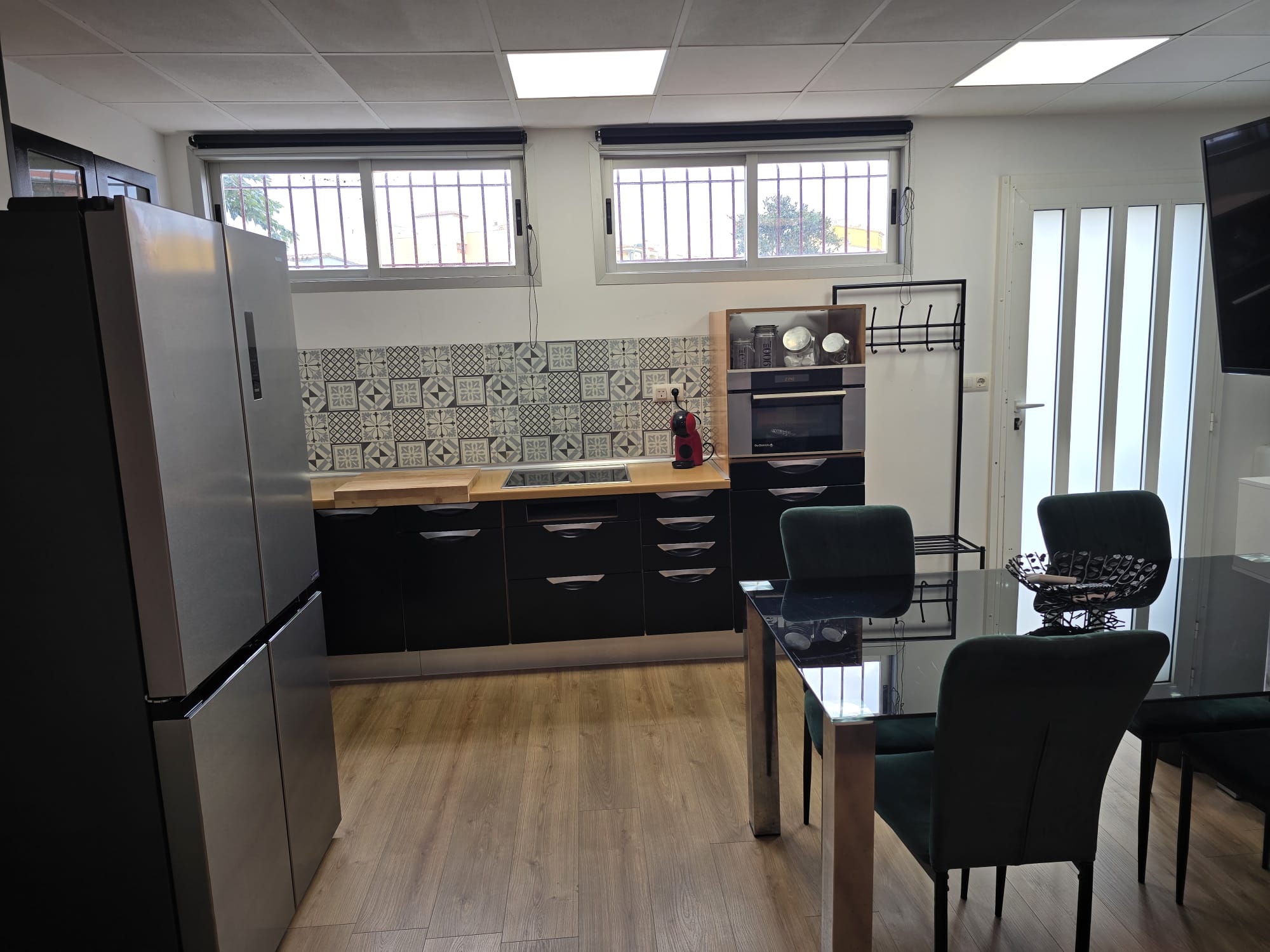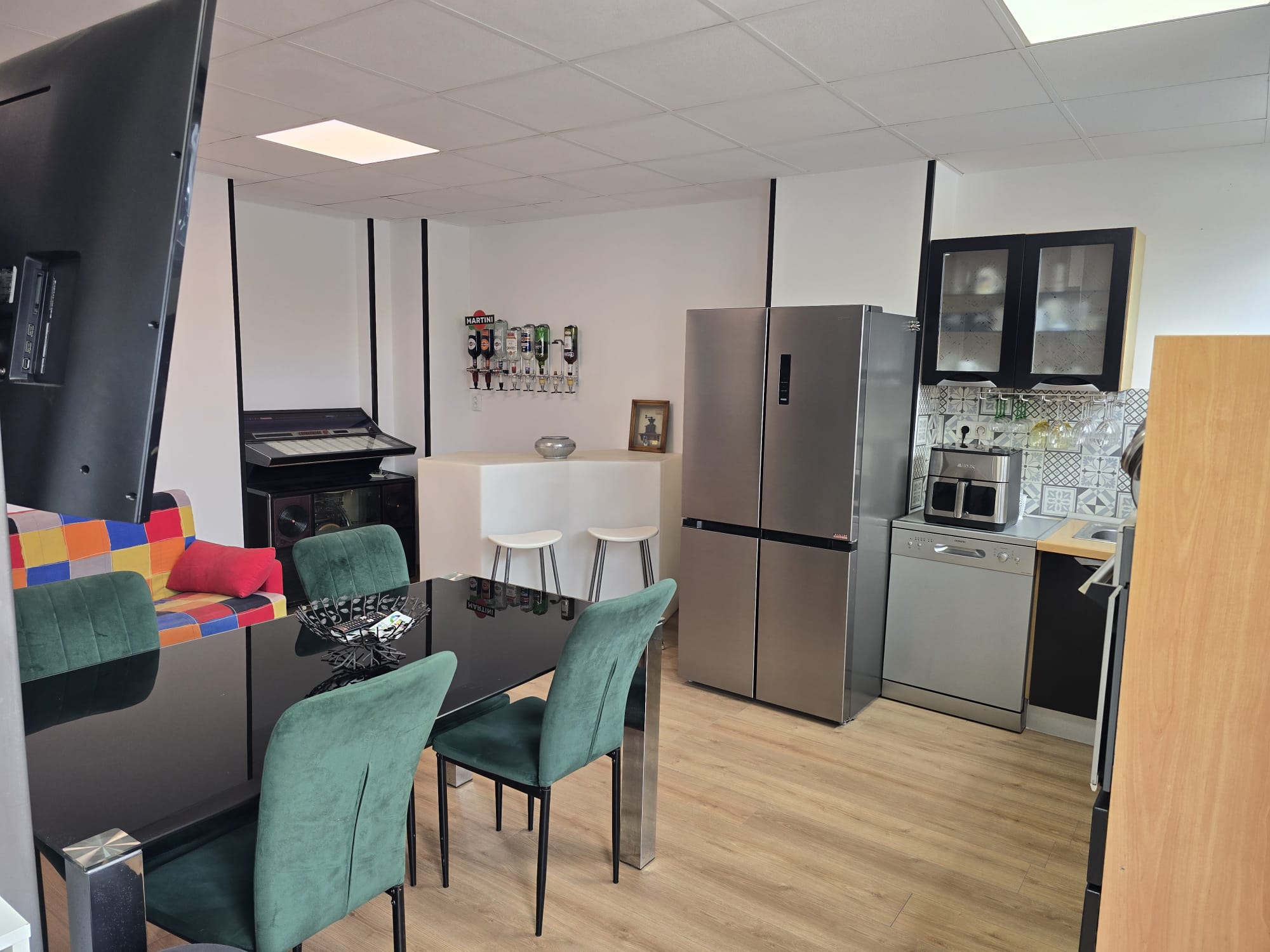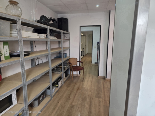En el pasillo se encuentran un baño con ducha, una cámara frigorífica, un pequeño dormitorio y una amplia estancia que sirve de salón-comedor. También hay una cocina funcional y equipada. Además, la segunda entrada al local se encuentra justo al lado de esta estancia.