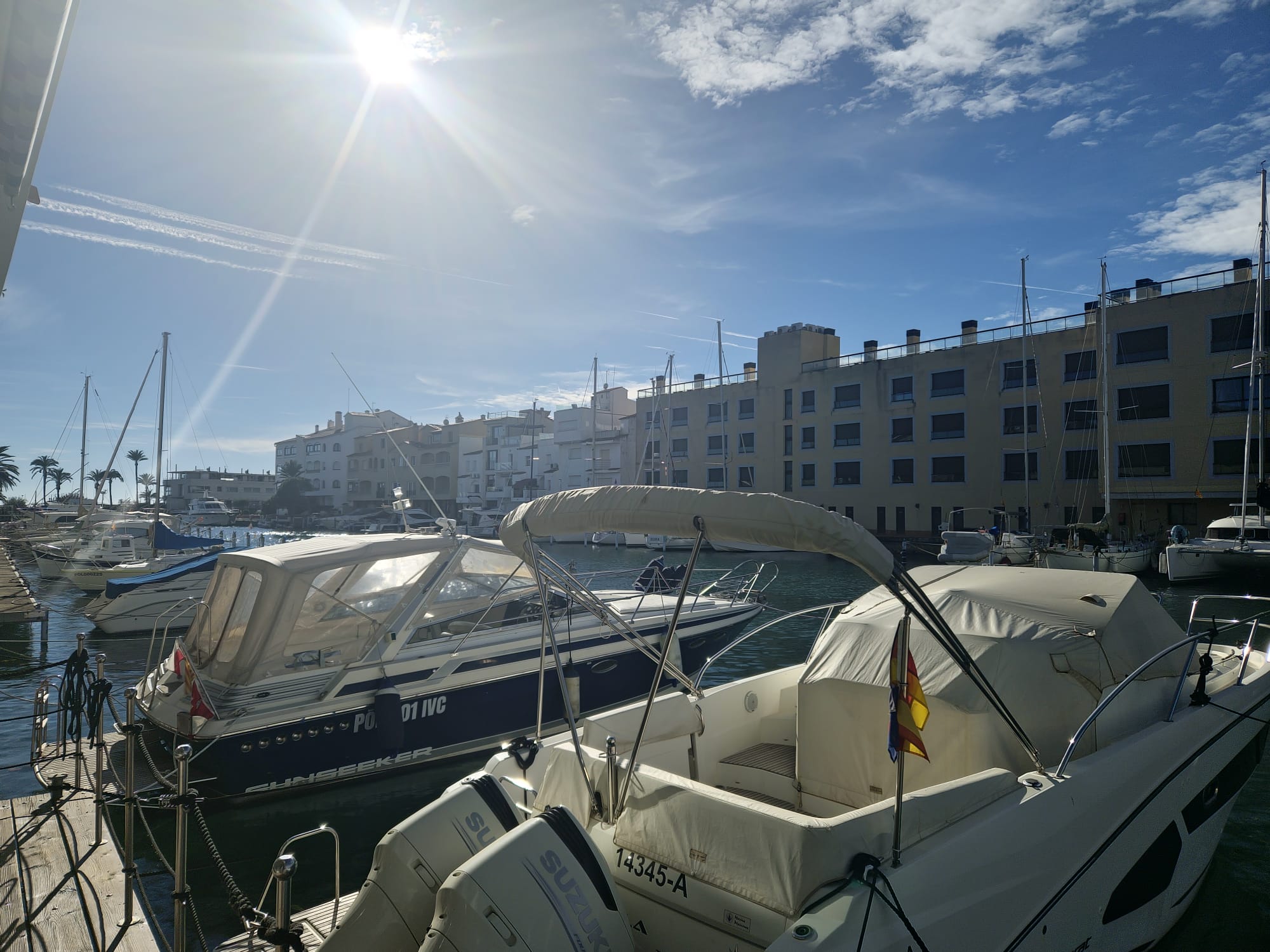 Empuriabrava, Port Moxo, casa adosada con amarre 4,2 m x 11 m, 3 dormitorios, garaje, parking y ascensor.