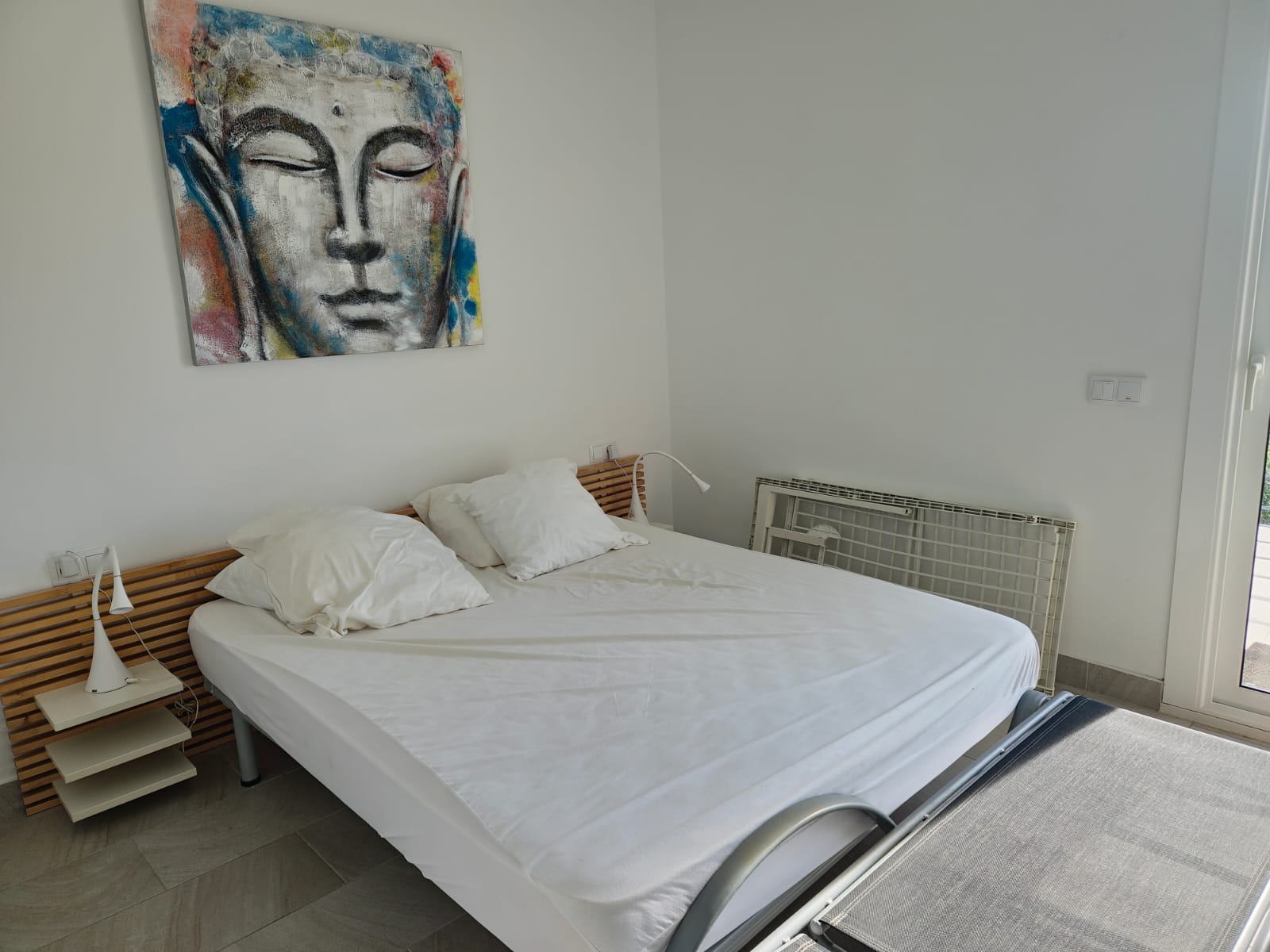 De forma independiente, la vivienda dispone de un tercer dormitorio doble con baño en suite, al que se puede acceder tambien mediante una entrada exterior, ofreciendo total privacidad para invitados. Desde este dormitorio, una escalera exterior conduce a la azotea, un espacio con gran potencial para crear una zona chill-out o solárium.