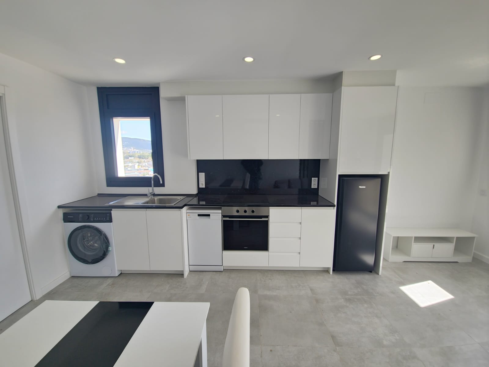 Salón-comedor con cocina americana totalmente integrada